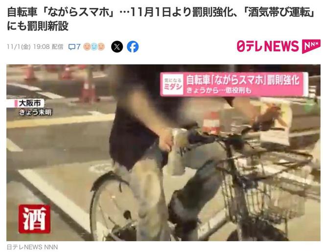 日本推出新规:骑车玩手机、酒后骑车将面临严厉处罚,影响永驻!