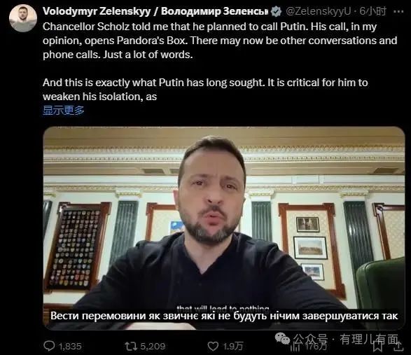 特朗普赢得美国大选之后,西方世界不约而同地想起了他说的那句话:“在24小时内结束俄乌冲突”。正当各国领导人还在进行各种斡旋的时候,泽连斯基第一个扛不住了。当地时间15日,他告诉乌克兰公共广播公司,在特朗普明年1月就任后,“俄罗斯对乌克兰的战争将会提早结束”。这是泽连斯基刚刚对德国总理朔尔茨给普京打电话的事暴跳如雷之后,所说出的无可奈何的真心话。泽连斯基无奈地表示:“可以肯定的是,在即将领导白宫的团队的政策下,这场战争会提早结束。这是他们的方针,是他们对公民的承诺。”翻译成大白话就是:打不打,是美国说了算,我说了不算。泽连斯基透露,自己已经给特朗普打了电话,进行了“建设性的交流”。虽然泽连斯基没有公布电话的内容,但是很明显,这是这几天各国首脑忙着打电话的热潮中,一个颇为重要的电话。更重要的一个电话可能是11月7日接通的。据《华盛顿邮报》报道,消息人士称,特朗普7日已与俄罗斯总统普京通话,并表示这是特朗普赢得大选后两人首次进行电话交流。报道说得有模有样,说特朗普在电话中建议普京不要让乌克兰战争升级,并提醒他“华盛顿在欧洲有相当大的军事存在”。特朗普还表示有兴趣就“尽快解决乌克兰战争”进行后续对话。没想到,意外发生了。到了11月11日,克里姆林宫发言人佩斯科夫表示,普京和特朗普之间根本就没有打电话。这事情根本就不存在!鉴于佩斯科夫以前也曾否认过媒体公开报道的事实,公众对于这个电话到底有没有打,还是心存疑虑。不过,不管特朗普有没有给他的“好兄弟”普京打电话,俄乌冲突的未来明显已经和人们之前所设想的不同了。尤其是欧洲人,对这场持续两年多的战争已经感到疲劳和厌倦。特朗普结束俄乌冲突的提议,让许多欧洲国家松了一口气。于是,他们也开始了各种操作,试图在变化的局势中抢占先机。最先行动的就是给了乌克兰最多援助的德国。11月15日,德国总理朔尔茨主动拿起电话,打给了普京,普京也爽快地接了朔尔茨的电话。而且,两人聊得相当热络,一聊就是整整一个小时。根据德国媒体披露的照片,这打电话可能还需要翻译,朔尔茨的身边坐着两个助手。至于电话的内容,我们当然不可能全知道。根据双方公布的消息,双方探讨了乌克兰局势,还有德国和俄罗斯之间的双边关系,中东局势等问题。朔尔茨的发言人表示,朔尔茨在通话中“谴责俄罗斯对乌克兰的侵略,并呼吁普京总统结束这场战争并撤军”。朔尔茨“敦促俄罗斯表现出与乌克兰谈判的意愿,以实现公正持久的和平”。普京方面则表示,当前危机是“北约长期奉行侵略性政策的直接结果”,可以谈判,但是应考虑到俄罗斯的安全利益,从新的领土现实出发,最重要的是解决冲突的根源。不过,这次通话也有亮点,那就是普京说了,俄罗斯始终严格履行其在能源领域的契约和合同义务。如果德国方面展示出兴趣,俄罗斯愿意开展互利合作。重启能源合作,对于即将入冬的德国来说无疑是一个好消息。毕竟,现在德国用的是昂贵的美国天然气,这直接增加了德国人的开支,并损害了德国产品的竞争力。由此可以看出,这个电话也是打出了成果,可不是自说自话。泽连斯基对于德国和俄罗斯的对话,立即发出视频,愤怒表示这是打开了“潘多拉魔盒”,只会削弱“对俄罗斯的孤立”。乌克兰外交部当天称,“我们需要的是具体、强有力的行动”,迫使俄方走向和平,而不是说服和绥靖。也就是说,要继续把俄罗斯打趴下,绝不和谈。不过,这一番表态,无非是做个样子而已,演员本色,该演的时候就要演好自己“抵抗英雄”的角色。实际上,泽连斯基已经明白,战争持续不了多久了。这也是他私下打电话给懂王的原因。那么,朔尔茨为什么会成为美国以外第一个给俄罗斯打电话的西方首脑呢?自从俄乌冲突爆发以来,西方世界几乎一致对俄罗斯采取了强硬立场,也就是说,闹僵了,早就相互不打电话了。朔尔茨上一次给普京打电话,还是2022年的12月,距今已经快两年。特朗普胜选之后,欧洲各国首脑都在蠢蠢欲动,希望在未来的谈判中占据先机,顺便凸显一下自身欧盟领导的形象。其中,争夺得最激烈的就是法国和德国。朔尔茨抢下这个先机,主要是为了自己。目前,德国执政联盟瓦解,德国要再次举行大选,各党派蠢蠢欲动。朔尔茨支持率低迷不振,胜选的概率似乎很小。德国反对派要求的就是优先关注本国,进行严格财政支出控制,削减对乌克兰援助,尽快解决俄乌冲突。在这种情况下,朔尔茨主动和普京通话,无疑会为自己增加支持率,提升形象。同时,朔尔茨还表示,这次打电话可不是“单独行动”,而是在与包括乌克兰在内的有关方面接触之后,再与普京进行对话。德国《明镜》周刊援引德国政府消息人士披露,这次通话,朔尔茨足足准备了数周时间,事先与美国、英国、法国、以及G7伙伴国都沟通协商过。不过,这次沟通并没有得到全票通过,至少泽连斯基就没同意,只是阻挡不住朔尔茨而已。一些欧洲官员也曾警告朔尔茨不要这样做。但是,朔尔茨的这个电话,更有可能是欧洲国家在为自己打算——他们可不希望特朗普私下就直接结束了俄乌冲突,从而让众多跟着美国混的小弟最后一脸懵。朔尔茨通话的时机可谓先下一招,意在确保欧洲的谈判地位。朔尔茨主动打出的这个电话,意味着欧洲的“统一战线”已