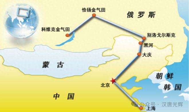 这条管道从2015年开始施工,在中国境内总长度5111公里,北起黑龙江省黑河市,南至上海,途经9个省、自治区、直辖市。通过该管道,俄罗斯每年将为中国输送380亿立方米的天然气,满足国内1.3亿户城市家庭(约4亿人)一年的用气需求。