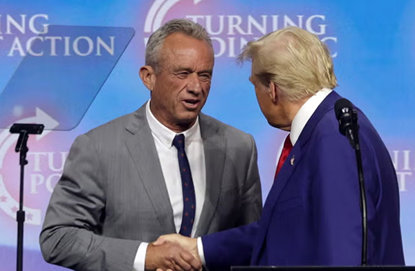 2024年10月,特朗普与小肯尼迪在竞选集会上握手。 《独立报》