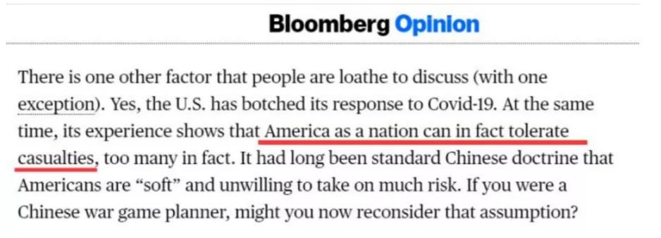他在媒体刊文诋毁中国,其中一段内提到:虽然美国的新冠疫情应对搞砸了,但这也说明“美国不怕死人”,证明了美国不是中国所描述的“软弱不堪”,而且美国的这种“不怕死人”,也将令中国制订针对美国的军事策略时不得不三思。