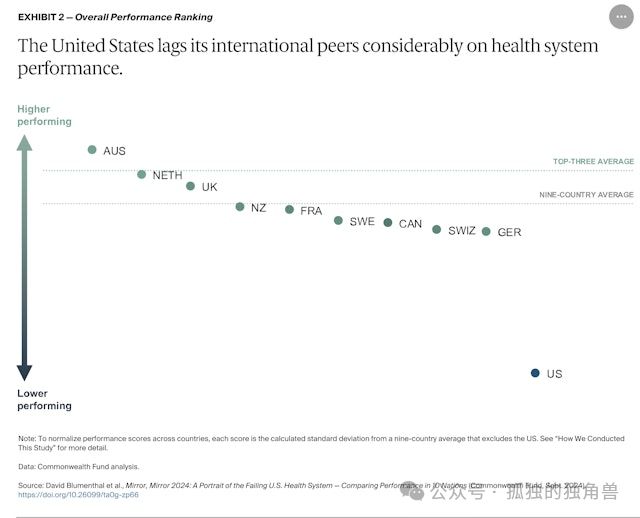 独立研究机构英联邦基金会(The Commonwealth Fund)2024年9月19日发表一份报告,分析了澳洲、加拿大、法国、德国、荷兰、新西兰、瑞典、瑞士、英国和美国等10个发达国家的医疗表现。美国的总体表现在10个国家中敬陪末席。