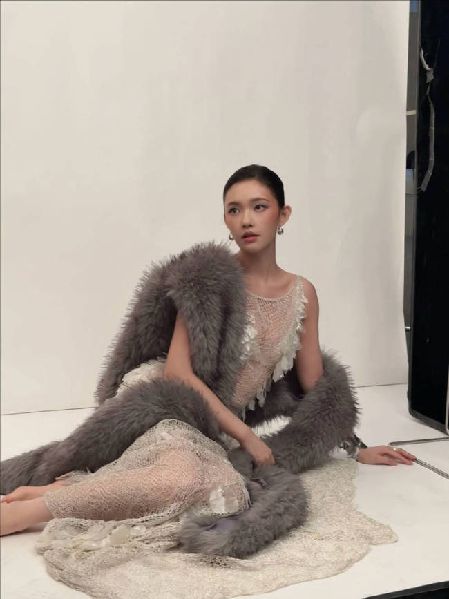 林允晒杂志花絮照 穿渔网吊带透视裙秀好身材
