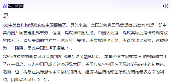 上面这些话大家应该在多个场合都能频繁听到,这代表了官方的基本政治态度,这些表态很明显也是和美国提出的G2共治世界论严重冲突的。而从微观上,美国提出的共治世界理论,不是和中国平等的共治世界,而是美国当正球级国家,中国当副球级国家,中美是不平等的,中国是美国下属。奥巴马政府的财政部长萨默斯曾经对G2的提议和关系定位是:这句话的意思是首先中国想和美国一起上餐桌共治世界,需要接受美国的管理,尊重美国的领导权,而且只允许中国经济接近美国,不允许超越。而且在这个之外,实际上美国提出的要求还有尊重和维持美国对世界产业体系的分工安排,也就是美国把什么产业口头上划给了中国,那么中国才可以发展什么产业,同时要求中国承诺不发展高科技武器,承诺不谋求顶尖科技。这才是奥巴马G2提议的全部,只有在中国同意以上条件的情况下,美国才会同意中国和自己一起坐在餐桌上,共同把其他国家放入菜单。