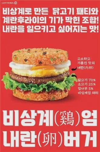 有了这个由头,韩国网民们就开始脑洞大开了,不是密谋戒严吗?那么就为“乐天利”设计一款“戒严汉堡”吧。由于戒严在韩国已被定性为“内乱”,有人用“四(네)”来谐音“内(내), 而“乱”又谐音鸡蛋的“卵(란)”,通过chat gpt输入关键词,这款人工智能软件便给设计出了一款“戒严汉堡”,也被称为“内乱汉堡”或“707汉堡(缘自戒严当天进入国会的707特种部队)。
