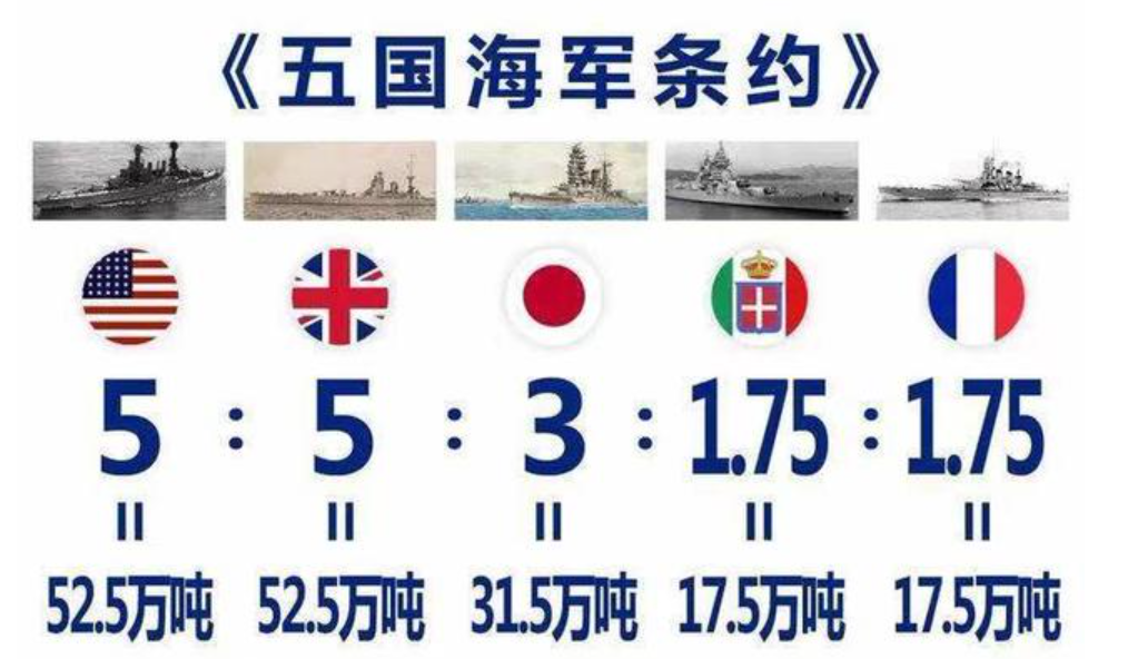 早在1922年的时候,英美就签订了著名的《华盛顿海军条约》,规定了美、英、日、法、意五国海军的主力舰总吨位比例5.25:5.25:3.15:1.75:1.75,也就是从这时候开始,我们基本可以认为,在军事上,美国人已经拥有了和英国人同样的地位。