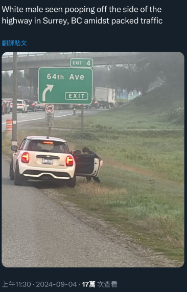 连公路也成了厕所,去年9月,加拿大网友在素里市91号高速公路上,拍到有印度人在公路边下车,到草坪上脱裤子拉粑粑。