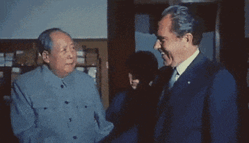 然后他们看热战打不过,那就玩冷战,对我们进行封锁禁运,想把我们卡死在自己的一亩三分地里,可结果呢?最后他们的总统亲自跑到中国来要和我们恢复关系。