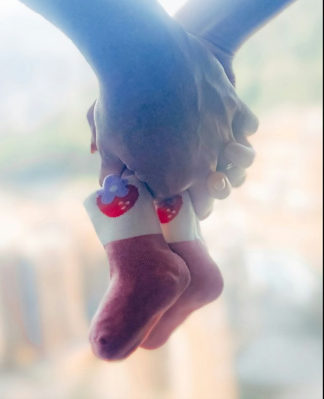她晒出自己和丈夫手拿一双婴儿袜子的照片,写道:“我的人生总是处处充满惊喜这么快就多了一个情人和我抢情人,大情人小情人都齐了!Mini Lau 要来了❤️”