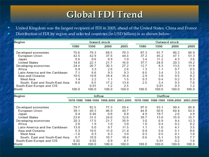 90年代以来,特别是中国加入WTO之后,成为最主要的FDI接收方。