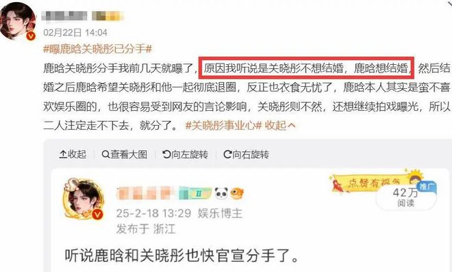 当时就有人猜测两人只是还没有官宣,实际早已领证。如果这样的话那两人就不是分手,而是离婚?怪不得这么久都不出来回应。