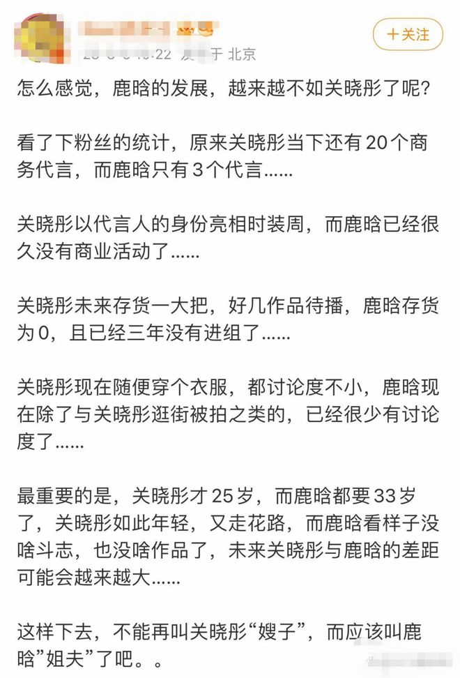 27岁的鹿晗光芒万丈,27岁的关晓彤前途无量,可两人的步伐是不同步的,感情失衡似乎只是时间问题。