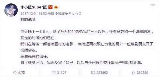 李小璐也发文澄清,自己当天晚上和某one只是因为工作聚一聚,并且有五个人同行。甚至拉出来好闺蜜马苏为自己证明。