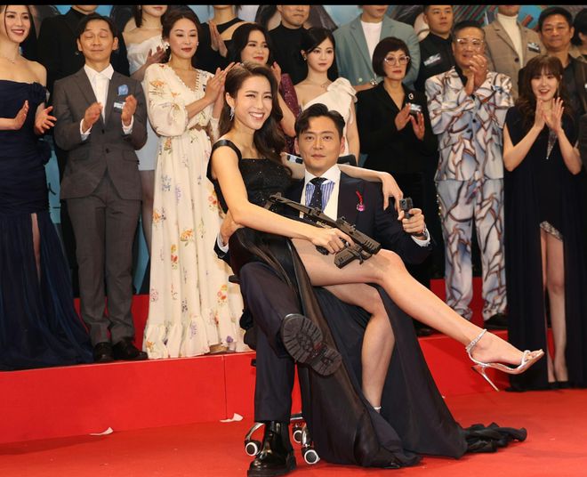 刘佩玥、刘颖旋、郭柏妍三位女主角身穿晚装惊艳现身,大晒修长美腿,尤其是郭柏妍,大露背礼服成为全场焦点。
