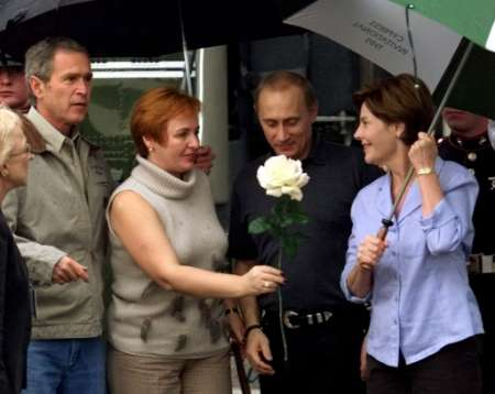 2001年11月,普京受邀访问美国,并成为小布什上任后第一位到访其私宅克劳福德农场的外国领导人,两国第一夫人以鲜花致意。在此期间,普京还亲自下厨。