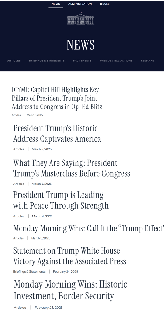 白宫官网已经彻底沦为“美国赢麻网”,每天都是赢声不断,连总统和记者的口角都要专发一条声明,庆祝总统战胜美联社。白宫官网。