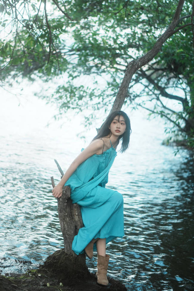 近日,杨肸子晒出在洱海旅行的照片。她一袭吊带蓝色连衣裙清新脱俗,漫步在洱海边。