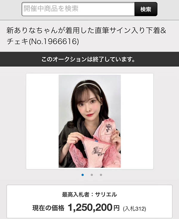 因为发文的时候距离结标还有6天,所以我当时预估是会破200万日币,不过现在看来我太保守了,石川澪的魅力远超过我的想像、粉丝的财力更是令人惊讶,最后这套内衣的结标价是ー