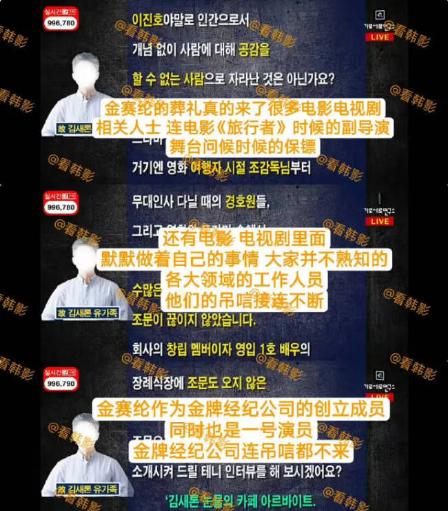 同时金赛纶遗属还指责了金秀贤经纪公司不来参加金赛纶葬礼的事情。“连多年前舞台问候的保镖都去了,还有很多默默做着自己事情,大家并不熟知的各大领域的工作人员,但金赛纶作为金牌经纪公司的创立成员,金牌经纪公司连吊唁都不来。”