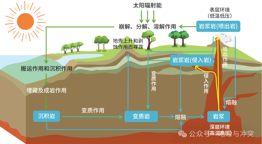 让我们回忆下当年学习的地球岩石圈物质循环。