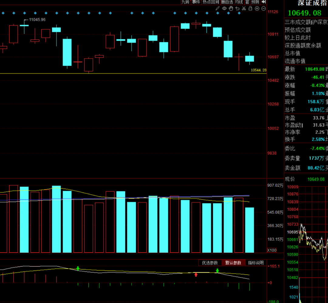 深证跌幅稍微多一些,小跌0.43%,不过整体也还没有跌破昨天的低点。