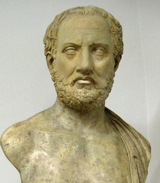 修昔底德雕像,其对伯罗奔尼撒战争起因的分析——“雅典的崛起以及由此引发的斯巴达的恐惧,使得战争不可避免”,被现代学者抽象为“修昔底德陷阱”