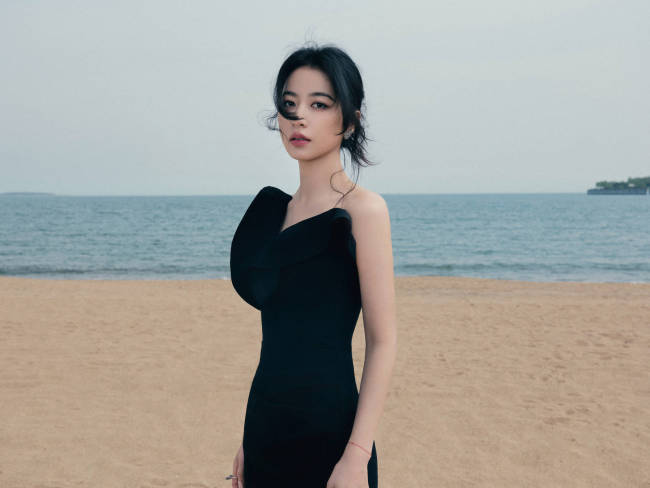 周雨彤修身长裙身材纤细窈窕 回眸甜笑宛如黑天鹅