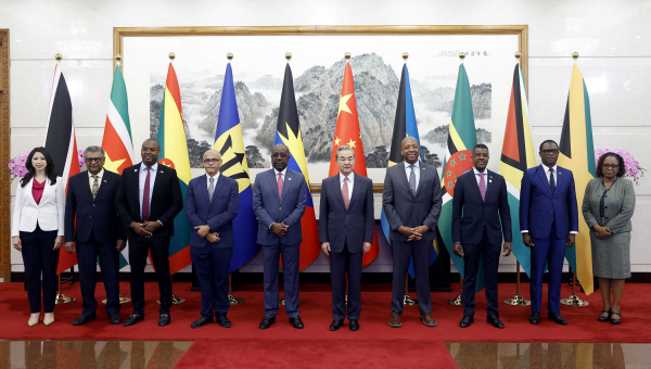 5月12日,中共中央政治局委员、外交部长王毅在京集体会见来华出席中拉论坛第四届部长级会议的加勒比建交国外长及代表。中国外交部网站