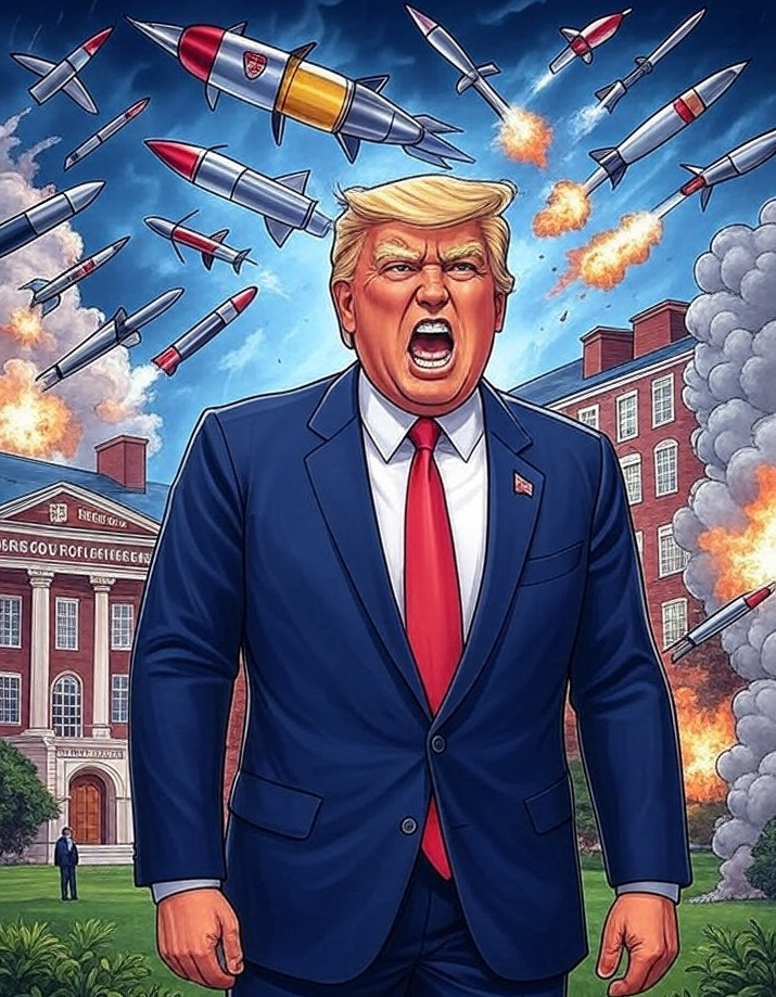特朗普认为,普天之下,莫非王土;率土之滨,莫非王臣。象牙塔里,居然冒出一个硬刚的。是可忍孰不可忍!“枪打出头鸟”,哈佛敢公开违抗,那就“你不入地狱,谁入地狱”,“灭你没商量”。杀鸡儆猴,昭告天下。