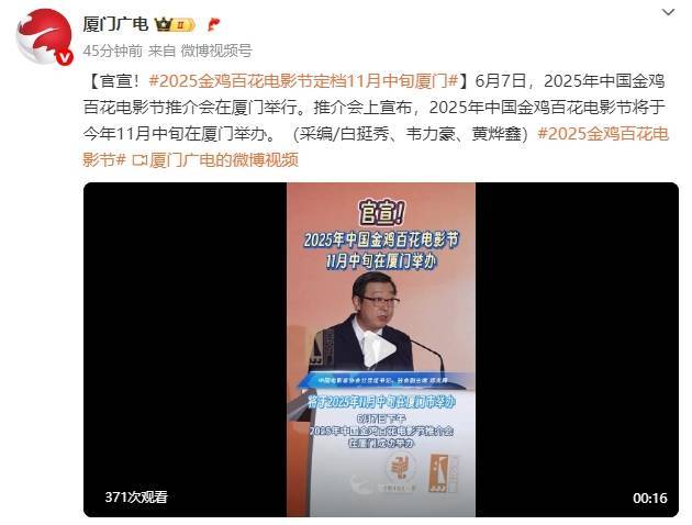据厦门广电,6月7日,2025年中国金鸡百花电影节推介会在厦门举行。推介会上宣布,2025年中国金鸡百花电影节将于今年11月中旬在厦门举办;由范丞丞、齐溪担任2025年中国金鸡百花电影节志愿者推广大使。