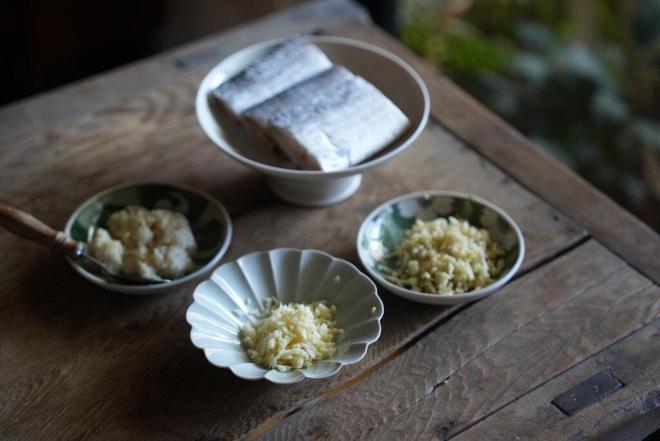 真的是胖白带鱼耶,稍微两面煎黄了之后,靠近腹部的中段鱼身,就膨了起来,非常骄傲的样子。我将细细切成米粒大小的姜、蒜丁,与小时候寄居长大的故乡豆瓣酱炒香之后,真的,儿时的香味就从岁月里传来了。