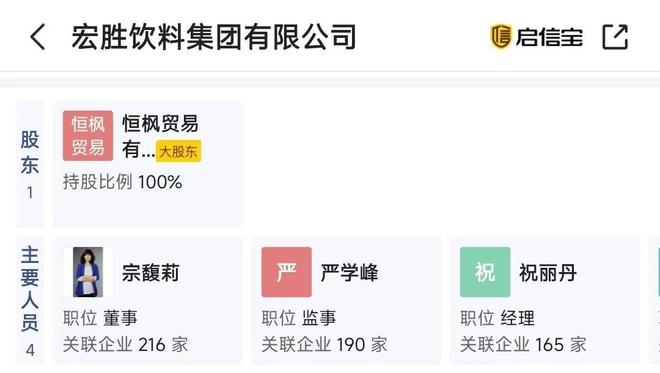 而且,严学峰目前还是宏胜系的总监,同时担任着杭州迅尔城通的法人。更巧的是,迅尔城通的董事正是宗馥莉。从这个商业链能看出来,严雪峰和宗馥莉关系匪浅。