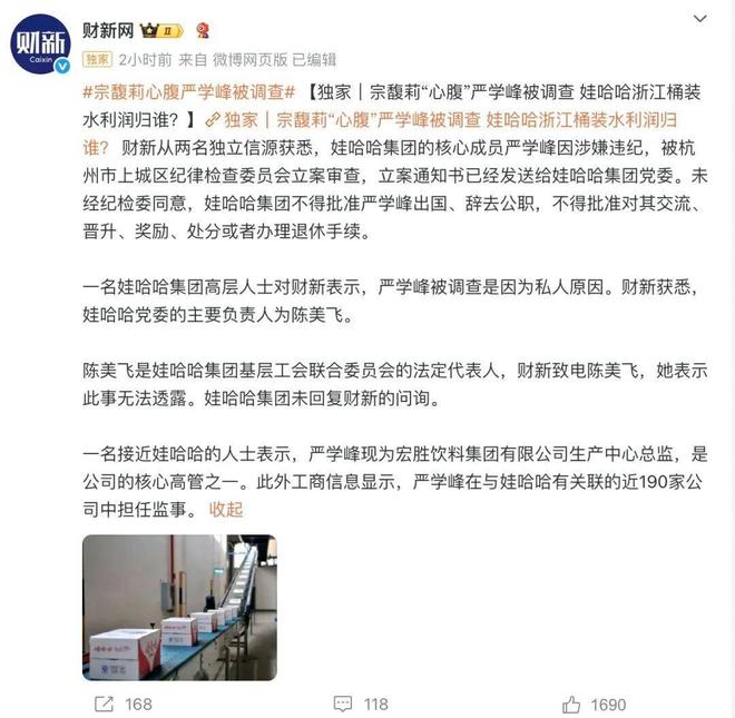 到了2024年,严学峰更是更上一层楼,成功进入到娃哈哈体系。他和宗馥莉的另外几名心腹一起,接管了供应链、生产等核心部门,这就意味着他已经彻底掌握了娃哈哈的“命脉”。
