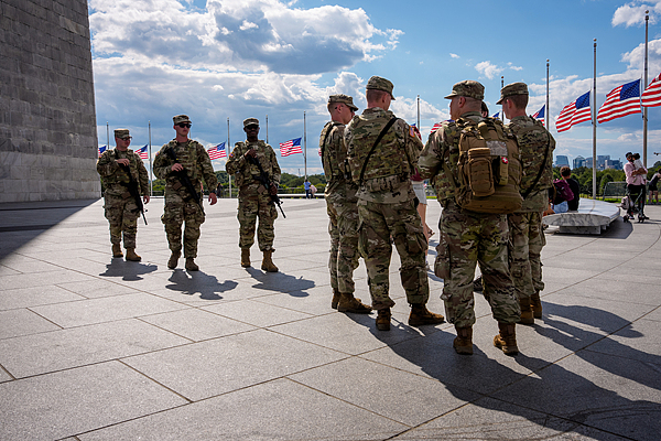 8月27日,美国华盛顿,武装国民警卫队成员在华盛顿纪念碑底部巡逻。 视觉中国