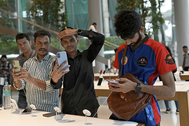 当地时间2025年9月19日,印度孟买,顾客在Apple BKC门店查看iPhone 17系列产品。当日,iPhone 17在印度上市。 视觉中国