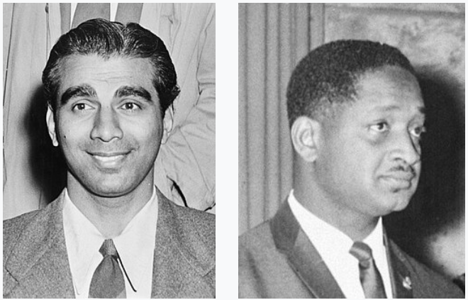 圭亚那人民进步党早期的两大领导人,贾根(左,印度裔)和伯纳姆(右,非裔)