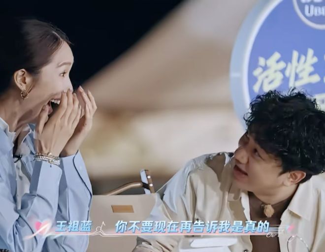 这时李亚男轻轻拍了拍王祖蓝的肩膀说:“那个绯闻是假的。”王祖蓝笑着回应:“现在当然知道是假的了,你可别现在告诉我那是真的。”一句话引得全场爆笑。