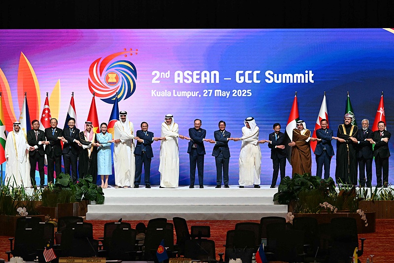 当地时间5月27日,马来西亚吉隆坡,第二届东盟-海合会峰会后,领导人们合影留念。 视觉中国