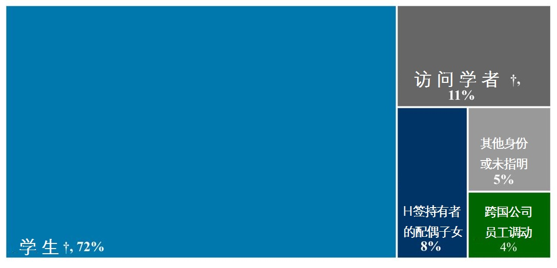 另一方面,由于OPT、STEM-OPT制度的不断完善,在美国境内留学后申请直接转H-1B身份或出境后入境激活,在H-1B申请总数中占比越来越高,并逐渐成为美国留学吸引力的主要来源。