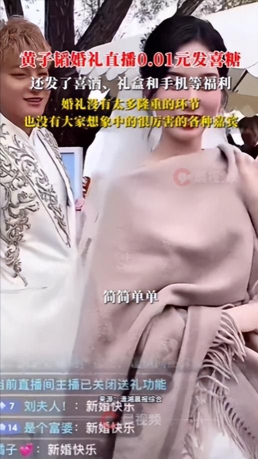 两人这场婚礼虽然投入不多,但是回报可不少,全程采取直播模式,黄子韬还时不时来一句点点关注,真的很难让人感受婚礼的氛围。直播间还挂了小黄车售卖伴手礼,直播打赏也没关闭,虽然没有明着要钱,但是都看人家婚礼了,不得随个三瓜两枣的。