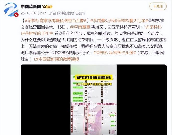 李禹熹当然也不想和这么个奇葩一直谈下去,两人闹翻过一段时间,是荣梓杉一直苦苦求她复合。李禹熹不搭理他,荣梓杉就把自己的头像换成女方的私密照,威胁女方回话。很难想象他小小年纪竟然有这样的心机,可怜李禹熹本来以为自己谈了个大明星,没想到碰上个pua渣男,估计是实在忍不了了才出来曝光的。