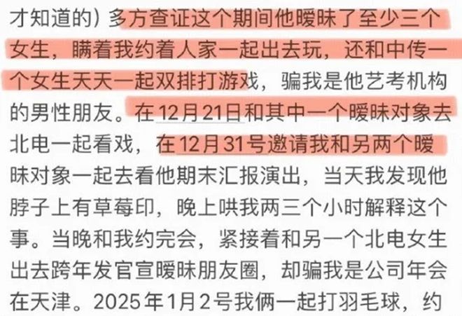 事情说到这还挺偶像剧感觉的,但是交往不到三个月,荣梓杉就突然变得忽冷忽热,长时间冷暴力李禹熹。李禹熹不知道男友为什么突然变成这样,找不到荣梓杉就从他身边的人找起,结果不找不知道,这么一找才发现他同时和三个女生搞暧昧。