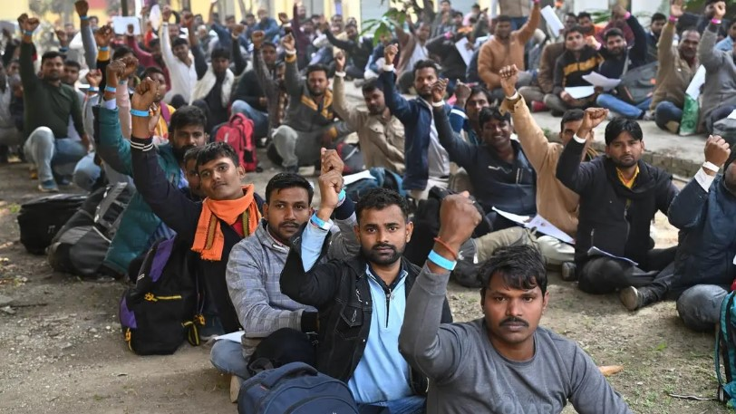 2024年11月26日,勒克瑙举办以色列就业招聘活动,求职者正在排队。 图源:Sandeep Saxena