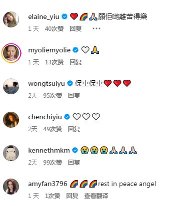 一字一句令人动容。消息一出,圈中好友包括黄翠如、马国明及陈自瑶等都留言为她打气及送上安慰。