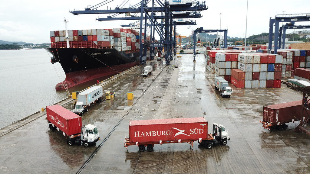 越南广宁钙磷国际集装箱港口迎接货船进港。 图源:越媒