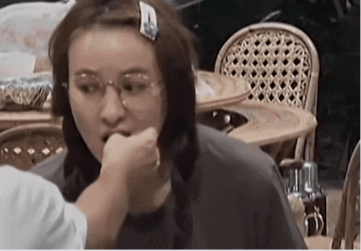后来的何炅已经练成了,嘴上是不停夸赞的,筷子是只扒拉不往嘴里面送的。