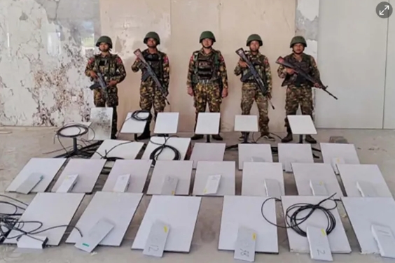 2025年10月16日,缅甸国防军对缅泰边境克伦邦妙瓦底地区臭名昭著的“KK园区”发起突袭行动,现场查获30余套“星链”接收器及配件等大批作案工具。
