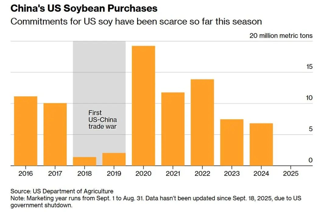 如果说芬太尼关税先降10%算是特朗普那边先释出的善意,那么我们这边其实也有释放善意。前天晚上,为了铺垫,我们这边下了18万吨大豆的订单,这就是这两天特朗普和贝森特在美国那边大吹特吹的“巨额大豆订单”的来源,他们吹嘘的“巨额”里现在唯一确切的部分。相比往年的订购量,这个单子非常小。为什么商务部的通告里农产品问题没有详细写,我的理解是这是需要时间观察的项目,你特朗普认真执行共识,不搞幺蛾子,后续的订单才会缓缓来。