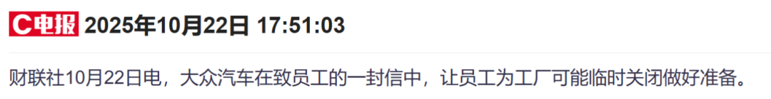 最近,据德国《图片报》报道,大众汽车发布致员工的一封信,告知员工于10月26日前停止主要工厂的生产。