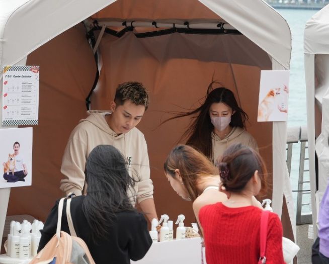 据悉,何广沛与女友Sarah筹备宠物用品生意长达一年,这次首度在尖沙咀海旁的“首届人宠时装展”摆摊试水。他们以情侣装出镜,Sarah全程戴口罩,负责摊位布置,何广沛则主力整理货物。
